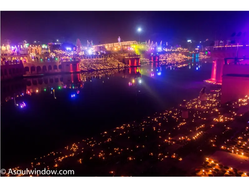The fair takes place at Ram Ki Paidi, Chitrakoot Dham. The ghats and temples are beautifully decorated with thousands of diyas and lights during Diwali.